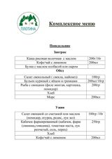 Есть возможность организовать комплексное питание: - завтрак - 300 руб. - обед - 500 руб. - ужин - 400 руб.